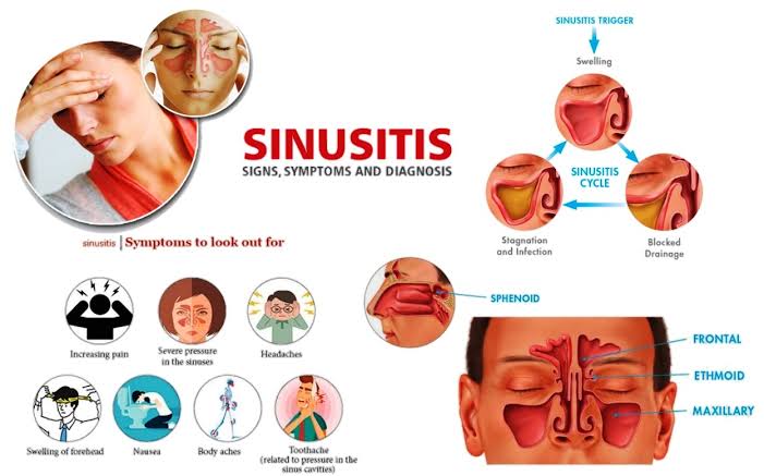 Pain, tenderness and swelling around your eyes, cheeks, nose or forehead.